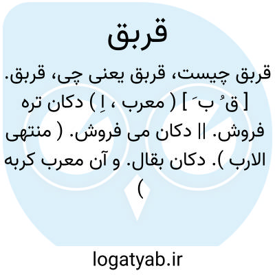 قربق. [ ق ُ ب َ ] ( معرب، اِ ) دکان تره فروش. || دکان می فروش. ( منتهی الارب ). دکان بقال. و آن معرب کربه ( کلبه ) فارسی است. ( از اقرب الموارد ).