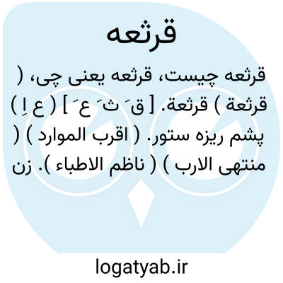( قرثعة ) قرثعة. [ ق َ ث َ ع َ ] ( ع اِ ) پشم ریزه ستور. ( اقرب الموارد ) ( منتهی الارب ) ( ناظم الاطباء ). زن را در ضعف و سستی بدان تشبیه کنند. ( اقرب الموارد ).