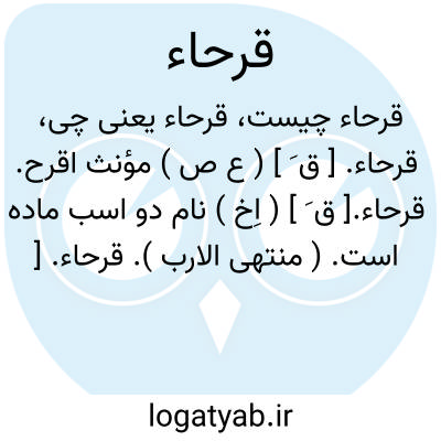 قرحاء.[ ق َ ] ( اِخ ) نام دو اسب ماده است. ( منتهی الارب ).