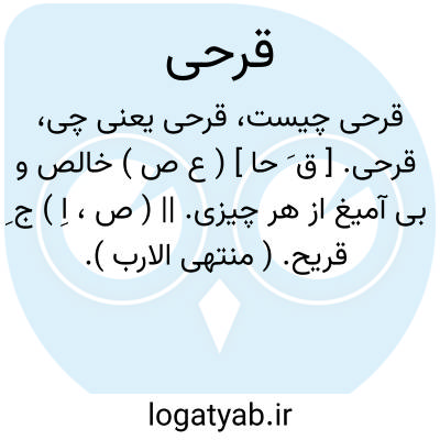 قرحی. [ ق َ حا ] ( ع ص ) خالص و بی آمیغ از هر چیزی. || ( ص، اِ ) ج ِ قریح. ( منتهی الارب ).
