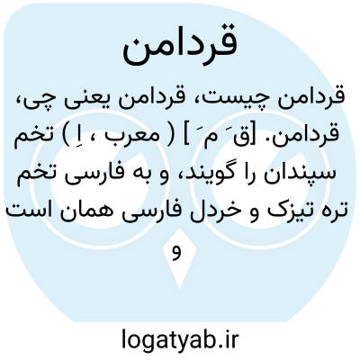 قردامن. [ق َ م َ ] ( معرب، اِ ) تخم سپندان را گویند، و به فارسی تخم تره تیزک و خردل فارسی همان است و چون آن را درآتش ریزند از دود آن تمام گزندگان بگریزند. ( آنندراج ). تخم سپندان، مأخوذ از یونانی. ( ناظم الاطباء ).