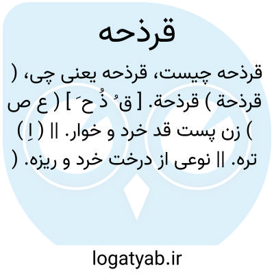 ( قرذحة ) قرذحة. [ ق ُ ذُ ح َ ] ( ع ص ) زن پست قد خرد و خوار. || ( اِ ) تره. || نوعی از درخت خرد و ریزه. ( منتهی الارب ).