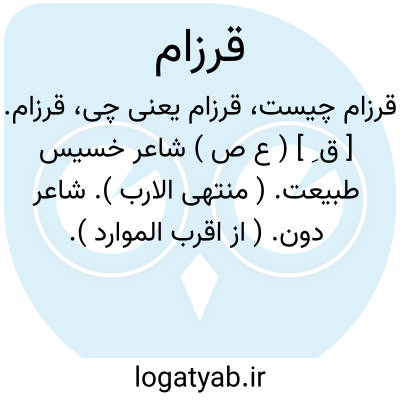 قرزام. [ ق ِ ] ( ع ص ) شاعر خسیس طبیعت. ( منتهی الارب ). شاعر دون. ( از اقرب الموارد ).