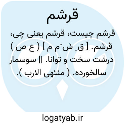 قرشم. [ ق ِ ش َم م ] ( ع ص ) درشت سخت و توانا. || سوسمار سالخورده. ( منتهی الارب ).