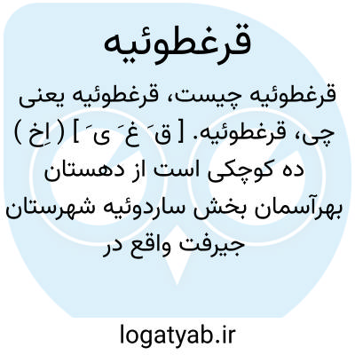 قرغطوئیه. [ ق َ غ َ ی َ ] ( اِخ ) ده کوچکی است از دهستان بهرآسمان بخش ساردوئیه شهرستان جیرفت واقع در 74000 گزی جنوب ساردوئیه و 4000 گزی باختر راه مالرو جیرفت - بافت. سکنه آن 14 تن. ( از فرهنگ جغرافیایی ایران ج 8 ).