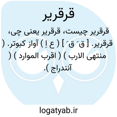 لغت نامه دهخدا قرقریر. [ ق َ ق َ ] ( ع اِ ) آواز کبوتر. ( منتهی الارب ) ( اقرب الموارد ) ( آنندراج ).