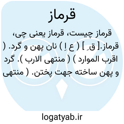 قرماز.[ ق ِ ] ( ع اِ ) نان پهن و گرد. ( اقرب الموارد ) ( منتهی الارب ). گرد و پهن ساخته جهت پختن. ( منتهی الارب ).