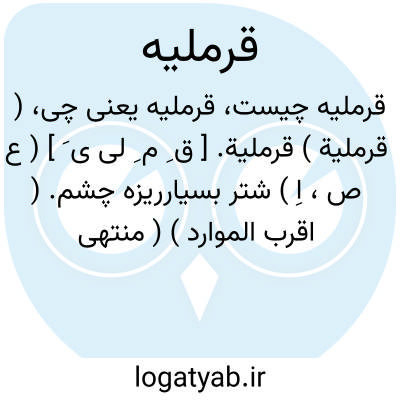 ( قرملیة ) قرملیة. [ ق ِ م ِ لی ی َ ] ( ع ص، اِ ) شتر بسیارریزه چشم. ( اقرب الموارد ) ( منتهی الارب ) ( آنندراج ).