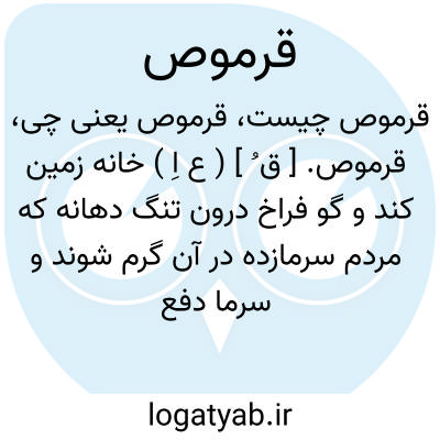 قرموص. [ ق ُ ] ( ع اِ ) خانه زمین کند و گو فراخ درون تنگ دهانه که مردم سرمازده در آن گرم شوند و سرما دفع کند. || جای کوماج نهادن. || جای تخم نهادن کبوتر. ( اقرب الموارد ) ( منتهی الارب ). رجوع به قرمص و قرماص شود.