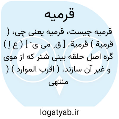 ( قرمیة ) قرمیة. [ ق ِ می ی َ ] ( ع اِ ) گره اصل حلقه بینی شتر که از موی و غیر آن سازند. ( اقرب الموارد ) ( منتهی الارب ). ج، قَرامی. ( اقرب الموارد ).