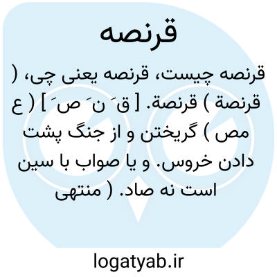 ( قرنصة ) قرنصة. [ ق َ ن َ ص َ ] ( ع مص ) گریختن و از جنگ پشت دادن خروس. و یا صواب با سین است نه صاد. ( منتهی الارب ) ( آنندراج ). || در گریز نشاندن باز را. || در گریز نشستن وی. ( اقرب الموارد ) ( منتهی الارب ) ( آنندراج ). و این فعل هم لازم و هم متعدی است. ( منتهی الارب ) ( اقرب الموارد ).