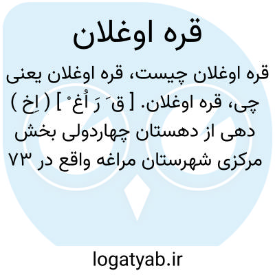 قره اوغلان. [ ق َ رَ اُغ ْ ] ( اِخ ) دهی از دهستان چهاردولی بخش مرکزی شهرستان مراغه واقع در 73 هزارگزی جنوب خاوری مراغه و 22 هزارگزی شمال خاوری شوسه شاهین دژ به میاندوآب. موقع جغرافیایی آن کوهستانی و معتدل. سکنه آن 247 تن. آب از چشمه سارها و محصولات آن غلات، بادام، حبوبات، کرچک میباشد. شغل اهالی زراعت و صنایع دستی آنان جاجیم بافی است. راه مالرو دارد. ( از فرهنگ جغرافیایی ایران ج 4 ).