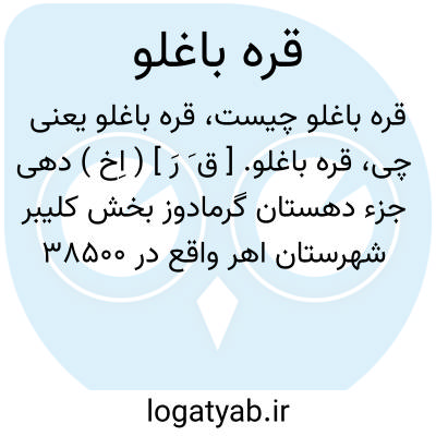 قره باغلو. [ ق َ رَ ] ( اِخ ) دهی جزء دهستان گرمادوز بخش کلیبر شهرستان اهر واقع در 38500 گزی شمال خاوری کلیبر و 38500 گزی شوسه اهر کلیبر. موقع جغرافیایی آن کوهستانی معتدل مایل به گرمی مالاریایی است. سکنه آن 32 تن. آب آن از چشمه و محصولات آن غلات و شغل اهالی زراعت و گله داری و صنایع دستی آنان فرش بافی و گلیم بافی است. راه مالرو دارد. محل قشلاق ایل چیپانلو است. ( از فرهنگ جغرافیایی ایران ج 4 ).