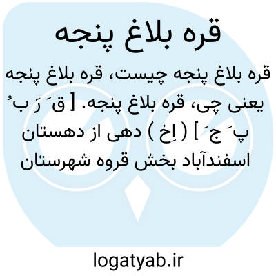 قره بلاغ پنجه. [ ق َ رَ ب ُ پ َ ج َ ] ( اِخ ) دهی از دهستان اسفندآباد بخش قروه شهرستان سنندج واقع در 32 هزارگزی جنوب باختری قروه و 2 هزارگزی جنوب راه فرعی قروه به سنقر. موقع جغرافیایی آن کوهستانی و سردسیر است. سکنه آن 400 تن. آب آن از چشمه و محصولات آن غلات، لبنیات. شغل اهالی زراعت و گله داری، و صنایع دستی زنان قالیچه بافی و جاجیم بافی است. راه مالرو دارد. ( از فرهنگ جغرافیایی ایران ج 5 ).