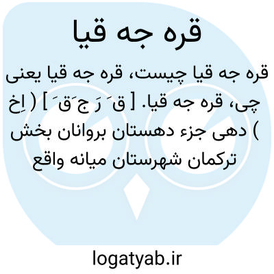 قره جه قیا. [ ق َ رَ ج َق َ ] ( اِخ ) دهی جزء دهستان بروانان بخش ترکمان شهرستان میانه واقع در 8 هزارگزی باختر ترکمان و 2 هزارگزی شوسه تبریز به میانه. موقع جغرافیایی آن کوهستانی و معتدل است. سکنه آن 935 تن. آب آن از چشمه و محصول آن غلات و حبوبات. شغل اهالی زراعت و گله داری است. راه مالرو دارد. ( از فرهنگ جغرافیایی ایران ج 4 ).