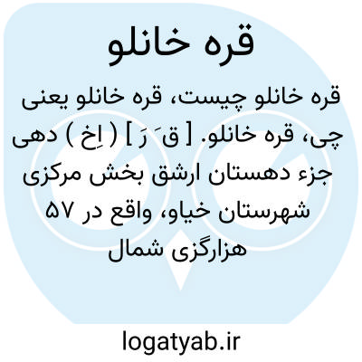 قره خانلو. [ ق َ رَ ] ( اِخ ) دهی جزء دهستان ارشق بخش مرکزی شهرستان خیاو، واقع در 57 هزارگزی شمال خاوری خیاو و10 هزارگزی شوسه گرمی به اردبیل. موقع جغرافیایی آن کوهستانی و معتدل است. سکنه آن 102 تن. آب آن از چشمه و محصول آن غلات. شغل اهالی زراعت و گله داری است. راه مالرو دارد. ( از فرهنگ جغرافیایی ایران ج 4 ).