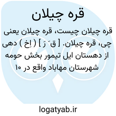 قره چیلان. [ ق َ رَ ] ( اِخ ) دهی از دهستان ایل تیمور بخش حومه شهرستان مهاباد واقع در 10 هزارگزی جنوب مهاباد و 4 هزارگزی خاور شوسه مهاباد به سردشت. موقع جغرافیایی آن کوهستانی و معتدل مالاریایی است. سکنه آن 78 تن. آب آن از چشمه و محصول آن غلات، توتون، حبوبات. شغل اهالی زراعت و گله داری و صنایع دستی زنان جاجیم بافی است. راه مالرو دارد. ( از فرهنگ جغرافیایی ایران ج 4 ).