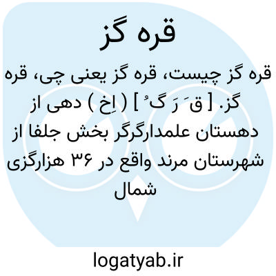 قره گز. [ ق َ رَ گ ُ ] ( اِخ ) دهی از دهستان علمدارگرگر بخش جلفا از شهرستان مرند واقع در 36 هزارگزی شمال مرند و 2 هزارگزی خط آهن جلفا به تبریز. موقع جغرافیایی آن جلگه معتدل است. سکنه آن 307 تن. آب آن از قنات و محصول آن غلات و پنبه. شغل اهالی زراعت و گله داری است. راه مالرو دارد. ( از فرهنگ جغرافیایی ایران ج 4 ).