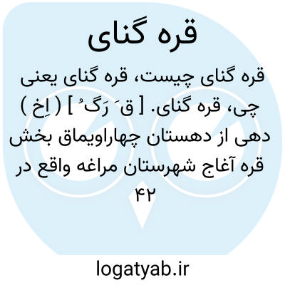 قره گنای. [ ق َ رَگ ُ ] ( اِخ ) دهی از دهستان چهاراویماق بخش قره آغاج شهرستان مراغه واقع در 42 هزارگزی جنوب خاوری قره آغاج و 38 هزارگزی جنوب شوسه مراغه به میانه. موقع جغرافیایی آن کوهستانی و معتدل مالاریایی است. سکنه آن 258 تن. آب آن از رودخانه و محصول آن غلات. شغل اهالی زراعت و صنایع دستی زنان جاجیم بافی است. راه مالرو دارد. سه محل به فاصله 1هزار گز به نام قره گنای بالا وپایین و وسط مشهور است. سکنه قره گنای بالا 58 تن و وسط 70 تن میباشد. ( از فرهنگ جغرافیایی ایران ج 4 ).