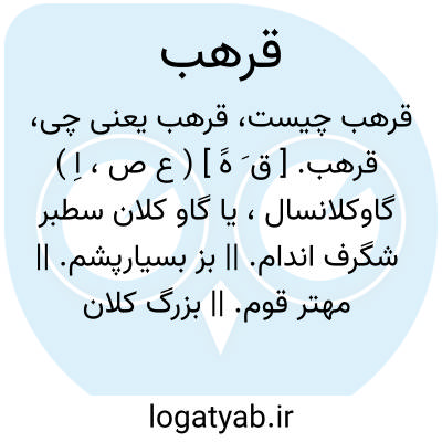 قرهب. [ ق َ هََ ] ( ع ص، اِ ) گاوکلانسال، یا گاو کلان سطبر شگرف اندام. || بز بسیارپشم. || مهتر قوم. || بزرگ کلان سال. ( منتهی الارب ) ( آنندراج ) ( اقرب الموارد ).