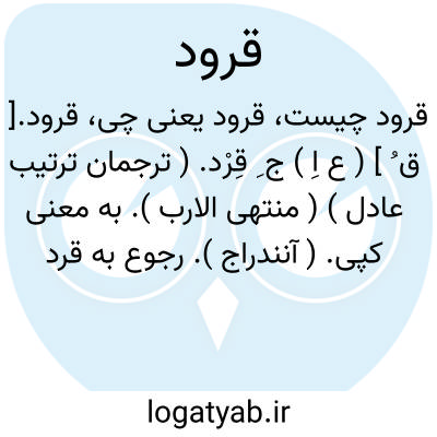 قرود.[ ق ُ ] ( ع اِ ) ج ِ قِرْد. ( ترجمان ترتیب عادل ) ( منتهی الارب ). به معنی کپی. ( آنندراج ). رجوع به قرد شود.