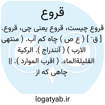 قروع. [ ق َ ] ( ع ص ) چاه کم آب. ( منتهی الارب ) ( آنندراج ). الرکیة القلیلةالماء. ( اقرب الموارد ). || چاهی که از اعلای کوه تا پایین او کنده شود. ( اقرب الموارد ) ( منتهی الارب ) ( آنندراج ).