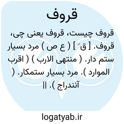 لغت نامه دهخدا قروف. [ ق َ ] ( ع ص ) مرد بسیار ستم دار. ( منتهی الارب ) ( اقرب الموارد ). مرد بسیار ستمکار. ( آنندراج ). || نافرمان. از حد گذرنده. || سخت جنگ کننده. ( منتهی الارب ) ( آنندراج ). الحراب. ( اقرب الموارد ). ج، قُرْف. ( منتهی الارب ) ( آنندراج ).