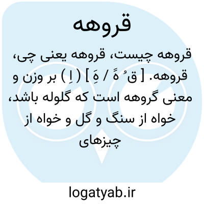 قروهه. [ ق ُ هََ / هَِ ] ( اِ ) بر وزن و معنی گروهه است که گلوله باشد، خواه از سنگ و گل و خواه از چیزهای دیگر سازند. ( برهان ) ( آنندراج ).
