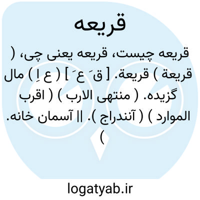 ( قریعة ) قریعة. [ ق َ ع َ ] ( ع اِ ) مال گزیده. ( منتهی الارب ) ( اقرب الموارد ) ( آنندراج ). || آسمان خانه. ( منتهی الارب ) ( اقرب الموارد ). || بهترین جای خانه. ( اقرب الموارد ). || ( ص ) ناقه ای که گشن بر وی بسیار برجهد و بار کم گیرد. ( منتهی الارب ).