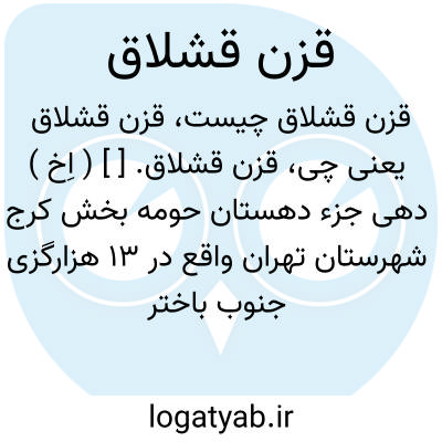 قزن قشلاق. [ ] ( اِخ ) دهی جزء دهستان حومه بخش کرج شهرستان تهران واقع در 13 هزارگزی جنوب باختر کرج و یکهزارگزی راه فرعی اشتهارد به کرج. موقع جغرافیایی آن جلگه معتدل. سکنه 89 تن. آب آن از رودخانه کرج و محصول آن غلات، بنشن، صیفی، چغندرقند، قلمستان. شغل اهالی زراعت است. ماشین میتوان برد. در بهار ایل میش مست حدود این ده می آیند. ( از فرهنگ جغرافیایی ایران ج 1 ).