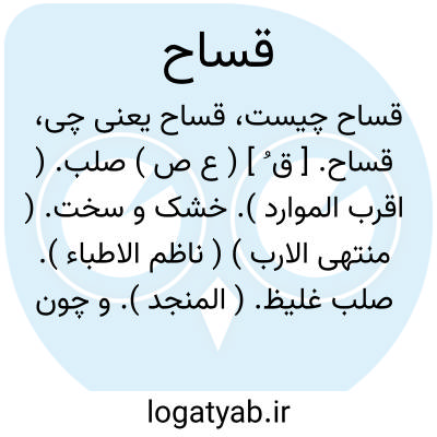 قساح. [ ق ُ ] ( ع ص ) صلب. ( اقرب الموارد ). خشک و سخت. ( منتهی الارب ) ( ناظم الاطباء ). صلب غلیظ. ( المنجد ). و چون نره ای در حالت نعوظ باقی ماند میگویند: انه لقساح. ( ناظم الاطباء ).