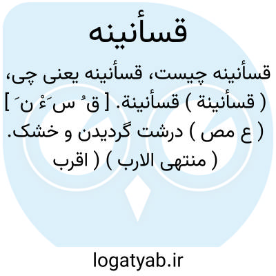 ( قسأنینة ) قسأنینة. [ ق ُ س َءْ ن َ ] ( ع مص ) درشت گردیدن و خشک. ( منتهی الارب ) ( اقرب الموارد ). گویند:اِقْسَأن َّ العود اقسئناناً و قسأنینة؛ یبس و اشتد. ( از اقرب الموارد ). || کلان سال و پشت دوتاگشتن. ( از اقرب الموارد ) ( منتهی الارب ). گویند: اِقسأن َّ الرجل؛ کبر. ( اقرب الموارد ). || درگذشتن و مُضی. ( اقرب الموارد ) ( منتهی الارب ). گویند: اِقسأن َّ فی العمل؛ مضی. ( اقرب الموارد ). || نیک تاریک گشتن. ( اقرب الموارد ) ( منتهی الارب ). گویند: اِقسأن َّ اللیل؛ نیک تاریک گشت. ( منتهی الارب ).
