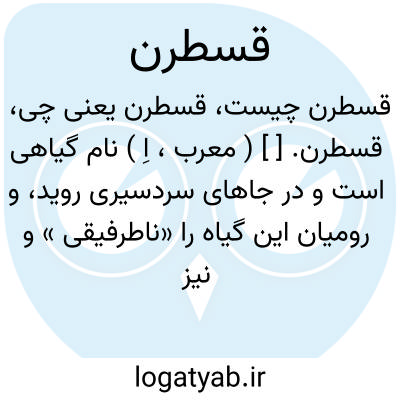 قسطرن. [ ] ( معرب، اِ ) نام گیاهی است و در جاهای سردسیری روید، و رومیان این گیاه را «ناطرفیقی » و نیز «رسوارنیا» نامند. دارای ساقی است نازک به درازی یک ذراع یا بیشتر و برگهائی دراز و نرم و در شکل شبیه به برگ درخت بلوط براق و خوشبو و بیشتر برگ آن را در ادویه به کار برند. رجوع به مفردات ابن بیطار و تذکره ضریر انطاکی شود.