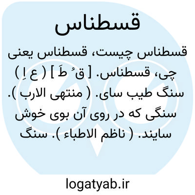 قسطناس. [ ق ُ طَ ] ( ع اِ ) سنگ طیب سای. ( منتهی الارب ). سنگی که در روی آن بوی خوش سایند. ( ناظم الاطباء ). سنگ عطار که بر آن بوی خوش ساید. ( مهذب الاسماء ). صلائةالطیب. ( اقرب الموارد ). صلایةالطیب. ( المزهر سیوطی ). || درختی است. ( اقرب الموارد ) ( منتهی الارب ) ( ناظم الاطباء ). ریشه این کلمه از قَسْطَنَس است که پس از اشباع به این صورت درآمده است. ( از اقرب الموارد ) ( منتهی الارب ). و رجوع به فهرست مخزن الادویه شود.