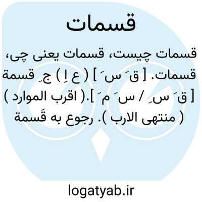 قسمات. [ ق َ س َ ] ( ع اِ ) ج ِ قسمة [ ق َ س ِ / س َ م َ ].( اقرب الموارد ) ( منتهی الارب ). رجوع به قَسمة شود.