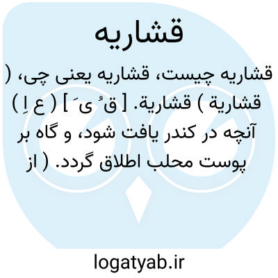 ( قشاریة ) قشاریة. [ ق ُ ی َ ] ( ع اِ ) آنچه در کندر یافت شود، و گاه بر پوست محلب اطلاق گردد. ( از تذکره ضریر انطاکی ). رجوع به قشارکندر شود.