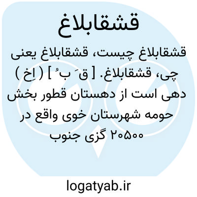 قشقابلاغ. [ ق َ ب ُ ] ( اِخ ) دهی است از دهستان قطور بخش حومه شهرستان خوی واقع در 20500 گزی جنوب باختری خوی و 6500 گزی شمال ارابه رو خوی به قطور. موقع جغرافیایی آن دره و هوای آن سردسیری سالم و سکنه آن 103 تن است. آب آن از چشمه و محصول آن غلات و کدو و شغل اهالی زراعت و گله داری و صنایع دستی زنان جاجیم بافی است. راه مالرو دارد. ( از فرهنگ جغرافیای ایران ج 4 ).