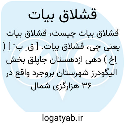 قشلاق بیات. [ ق ِ ب َ ] ( اِخ ) دهی ازدهستان جاپلق بخش الیگودرز شهرستان بروجرد واقع در 36 هزارگزی شمال الیگودرز و کنار راه مالرو طبیب آباد به خان آباد. موقع جغرافیایی آن جلگه و هوای آن معتدل است. سکنه آن 343 تن است. آب آن از قنات و محصول آن غلات و لبنیات و چغندر و پنبه و شغل اهالی زراعت و گله داری است. راه اتومبیل رو دارد. ( از فرهنگ جغرافیایی ایران ج 6 ).