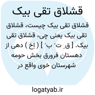 قشلاق تقی بیک. [ ق ِ ت َ ب َ ] ( اِخ ) دهی از دهستان فرورق بخش حومه شهرستان خوی واقع در 16500 گزی شمال باختری خوی و 2500 گزی شوسه خوی به سیه چشمه. موقع جغرافیایی آن کوهستانی و معتدل مالاریایی است. سکنه آن 400 تن است. آب آن از چشمه و قنات و محصول آن غلات و شغل اهالی زراعت و گله داری و صنایع دستی زنان جاجیم بافی است. راه مالرو دارد. ( از فرهنگ جغرافیایی ایران ج 4 ).