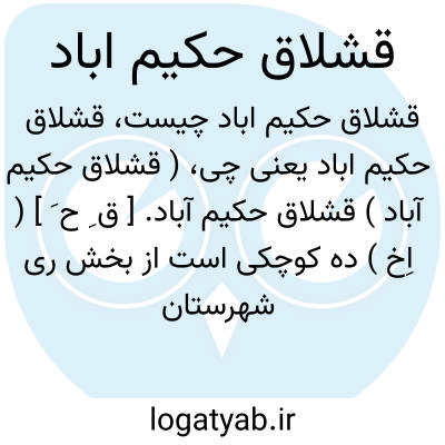 ( قشلاق حکیم آباد ) قشلاق حکیم آباد. [ ق ِ ح َ ] ( اِخ ) ده کوچکی است از بخش ری شهرستان تهران. سکنه آن 20 تن است. ( از فرهنگ جغرافیایی ایران ج 1 ).