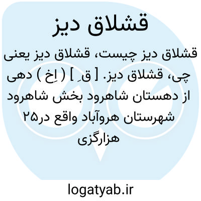 قشلاق دیز. [ ق ِ ] ( اِخ ) دهی از دهستان شاهرود بخش شاهرود شهرستان هروآباد واقع در25 هزارگزی خاور هشجین و 3500 گزی شوسه هروآباد به میانه. موقع جغرافیایی آن کوهستانی و هوای آن معتدل مایل به گرمی مالاریایی است. سکنه آن 40 تن می باشد.آب آن از دو رشته چشمه و محصول آن غلات و گردو و شغل اهالی زراعت و گله داری و صنایع دستی زنان جاجیم بافی و گلیم بافی است. راه مالرو دارد. این ده محل سکنای ایل شاطرانلو است. ( از فرهنگ جغرافیایی ایران ج 4 ).