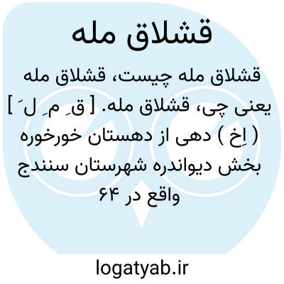 قشلاق مله. [ ق ِ م ِ ل َ ] ( اِخ ) دهی از دهستان خورخوره بخش دیواندره شهرستان سنندج واقع در 64 هزارگزی باختر خورخوره. موقع جغرافیایی آن کوهستانی و هوای آن سردسیری است. سکنه آن 156 تن است. آب آن از چشمه و محصول آن غلات، توتون، لبنیات و شغل اهالی زراعت و گله داری و صنایع دستی زنان جاجیم بافی است. راه مالرو دارد. ( از فرهنگ جغرافیایی ایران ج 5 ).