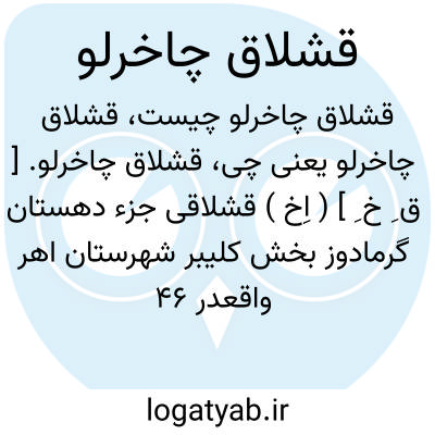قشلاق چاخرلو. [ ق ِ خ ِ ] ( اِخ ) قشلاقی جزء دهستان گرمادوز بخش کلیبر شهرستان اهر واقعدر 46 هزارگزی شمال خاوری کلیبر و 46 هزارگزی شوسه ٔاهر به کلیبر. موقع جغرافیایی آن کوهستانی، هوای آن معتدل و مایل به گرمی مالاریایی است. محل قشلاق 612 نفر از ایل چلیپانلو است. آب آن از رودخانه سلین است. راه مالرو دارد. ( از فرهنگ جغرافیایی ایران ج 4 ).
