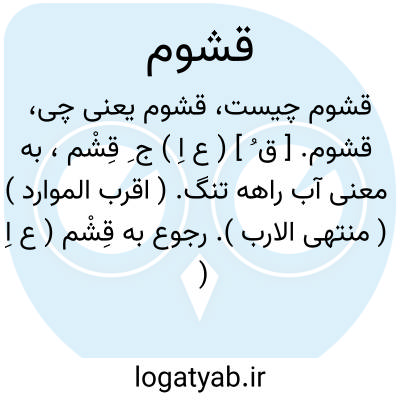 قشوم. [ ق ُ ] ( ع اِ ) ج ِ قِشْم، به معنی آب راهه تنگ. ( اقرب الموارد ) ( منتهی الارب ). رجوع به قِشْم ( ع اِ ) شود.