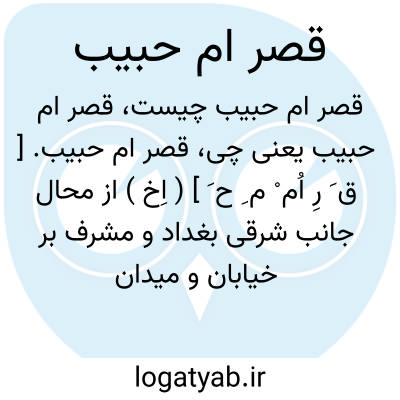 قصر ام حبیب. [ ق َ رِ اُم ْ م ِ ح َ ] ( اِخ ) از محال جانب شرقی بغداد و مشرف بر خیابان و میدان است. این محل را هارون به عبادبن خصیب واگذاشت و سپس به فضل بن ربیع رسید و در زمان مأمون به ام حبیب دختر هارون منتقل شد و آنگاه به دختران خلفا تا آنکه قصر مهدی در رصافة برای آنان آماده گردید. ( معجم البلدان ).