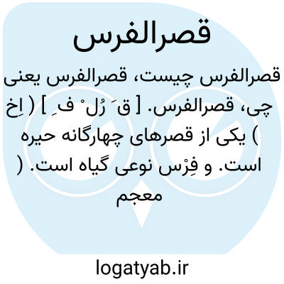 لغت نامه دهخدا قصرالفرس. [ ق َ رُل ْ ف ِ ] ( اِخ ) یکی از قصرهای چهارگانه حیره است. و فِرْس نوعی گیاه است. ( معجم البلدان ).
