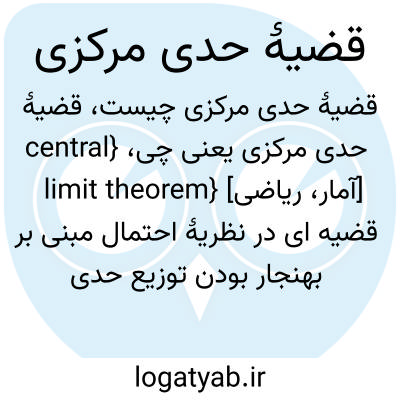 {central limit theorem} [آمار، ریاضی] قضیه ای در نظریۀ احتمال مبنی بر بهنجار بودن توزیع حدی میانگین نمونه ای تصادفی از متغیرهای مستقل و هم توزیع با وردایی/ واریانس متناهی از جامعه ای دلخواه