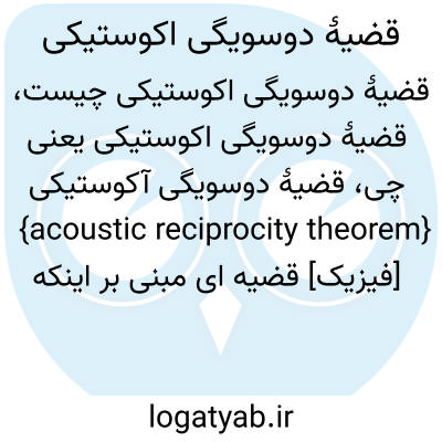 {acoustic reciprocity theorem} [فیزیک] قضیه ای مبنی بر اینکه چشمۀ صوتی مستقر در نقطۀ A همان فشاری را در نقطۀ B ایجاد می کند که اگر چشمه در B می بود در A ایجاد می کرد