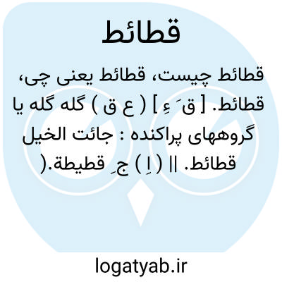 قطائط. [ ق َ ءِ ] ( ع ق ) گله گله یا گروههای پراکنده: جائت الخیل قطائط. || ( اِ ) ج ِ قطیطة.( اقرب الموارد ) ( منتهی الارب ). رجوع به قطیطة شود.