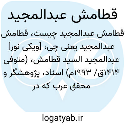 [ویکی نور] عبدالمجید السید قطامش، (متوفی 1414ق/ 1993م‏) استاد، پژوهشگر و محقق عرب که در حوزه مثال‎های عربی فصیح تخصص دارد. وی کتاب‎هایی را تحقیق کرده یا بر آن‎ها مقدمه نوشته است. الأمثال العربیة: دراسة تاریخیة تحلیلیة، تألیف اوست.